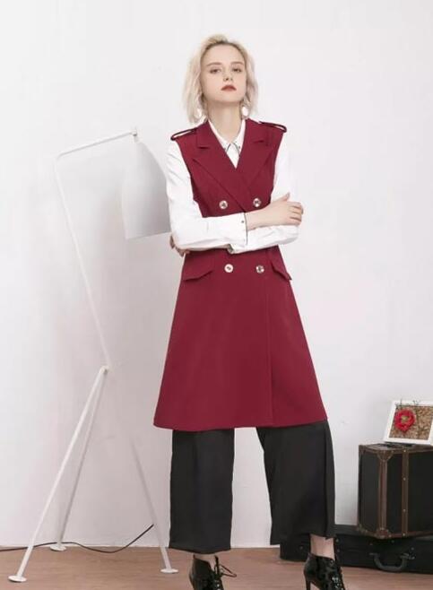 这件酒红色金属扣长马甲,金属扣的装饰更添层次感,轻松提升造型,简约干练的熟女look,满满的秋日感。