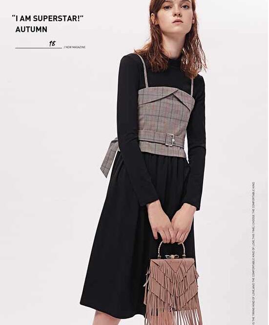 孰谓秋冷叶凋,连衣裙依旧花颜月貌。简单才显高贵,这是一件简约有质感的连衣裙,它的造型简洁可以出席各种场合。流畅的线条,和腰身完美融合,小A裙摆,显高又显瘦,格纹小背心,别致生趣。