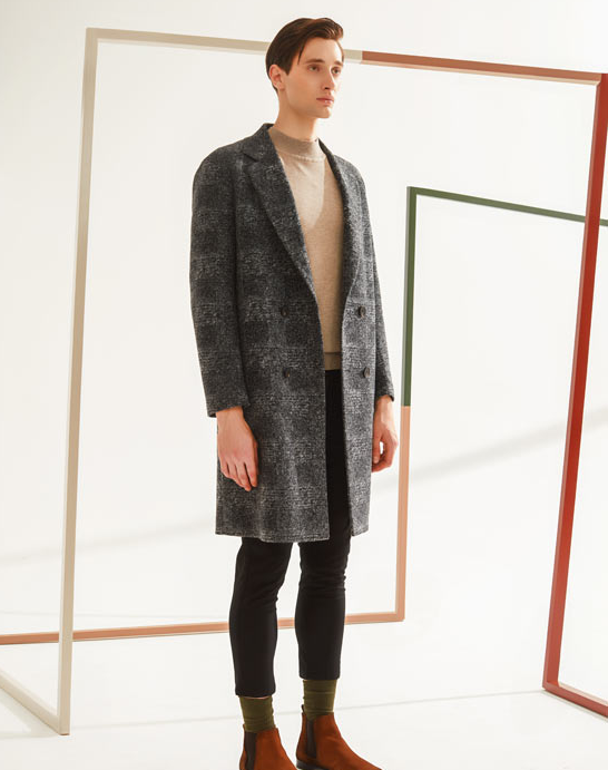 很多人觉得暗色系过于沉闷,其实小编倒觉得暗色系更能体现一个人的内在气质,沉稳、低调、洒脱的型男魅力,一件格纹毛呢大衣就能轻松展现。