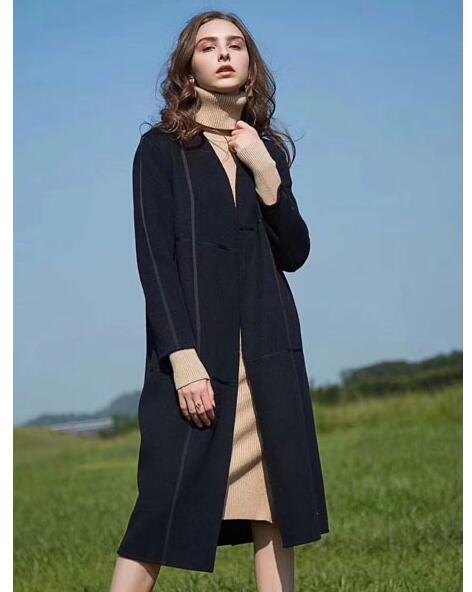 这件长长轮廓的黑色大衣,也是十分修身显瘦的款式,设计非常单调,没有腰带,也没有大大口袋去装饰美感,但简约的设计却穿出了美感,与米黄色的长款毛衣搭配更是靓丽,很有层次感,完全点中了时尚穴位。