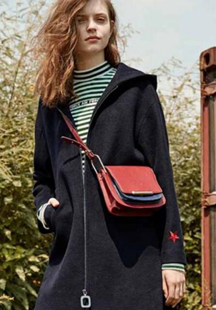 个性优雅范的黑色长款外套,显著了简约而不简单,内搭那件绿色条纹的更显了搭配品味,长长的黑色外套到膝盖处,时尚个性的尽显,红色的挂包更是特色,与黑色大衣融合,大气简约。