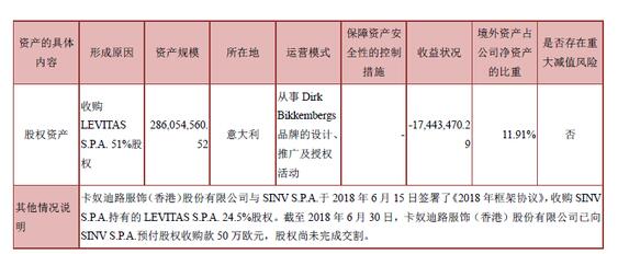到2018年6月30日,时髦买手店O2O项目归母净亏本892.07万元,公告称,业绩不达预期首要是新途径和新事务形式的拓宽仍处于探究阶段,项目尚处于培养期;意大利LEVITAS S.P.A.51%股权收买及DB品牌营销网络建设项目,归母净亏本889.62万元,DB品牌收入较上年同期下降31.20%,首要是DB品牌授权收入削减,因与意大利团队尚在磨合期,项目进度进行了相应调整。