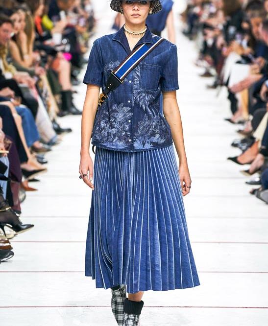 爱德华七世时期的夹克、长裙、蓝色牛仔裤、皮革和天鹅绒的服装,充溢主意与个性。Dior品牌DNA的融入,又让这些服装变得日常且实穿。