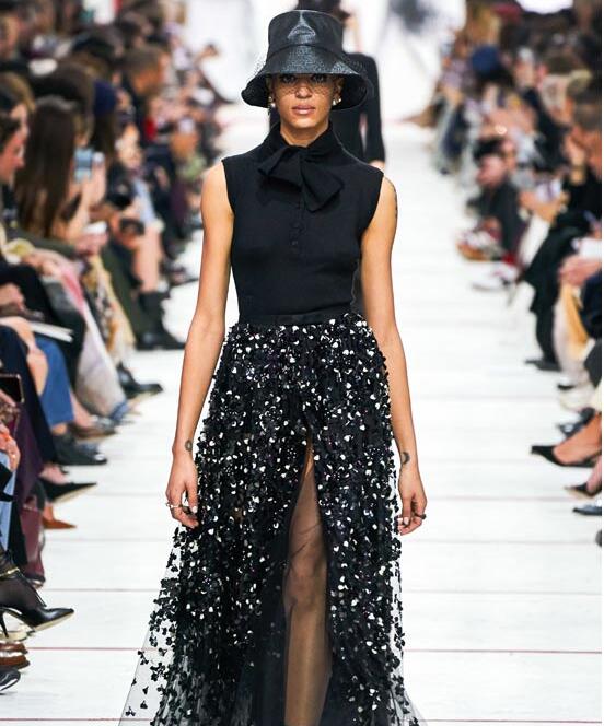 本季,Maria再次演绎了Dior经典的礼衣廓形,在连体衣和亮片刺绣所构成的晚礼衣上,展示Christian Dior先生宠爱的力量与高雅的结合。