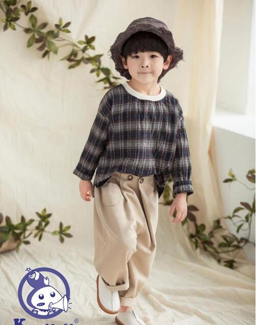 小朋友们的童装穿搭应以天然健康为主,选用高质量的棉麻面料,舒适的款式,穿起来非常舒适,这身翻领纯棉衬衣,调配一条蓝灰色廓版牛仔裤,萌趣感十足。