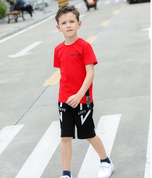 小男生穿着这件赤色的棉质圆领短袖T恤,搭配一条时髦感超强的黑色印花五分裤,一双休闲运动鞋,走在大街上,这身穿搭衬出万分帅气,成为众多小朋友仰慕的焦点。