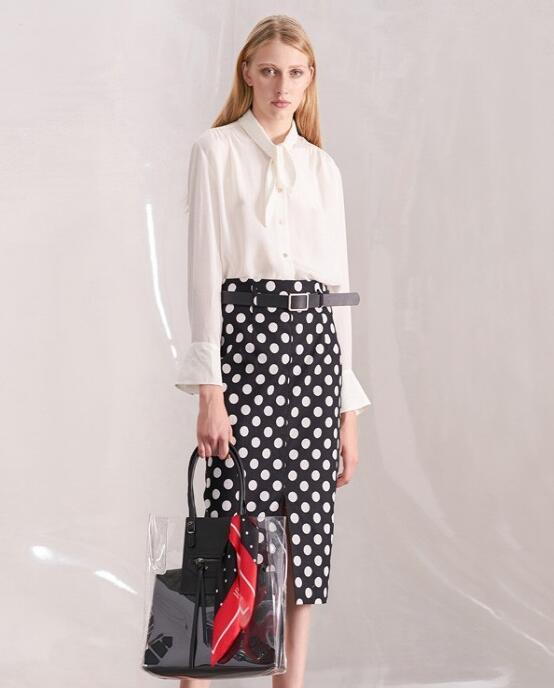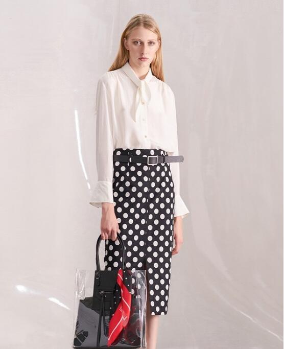 简练的白色极为新鲜大方,衣领处绑带蝴蝶结的规划,很好的将甜美与小新鲜感彰显出,极为甜美吸晴。使得全体虽是简练却不单一,加上轻薄雪纺的面料,又更加舒适透气,十分契合春夏季的气候。调配着黑色半身裙,全体更为知性高雅。高腰的样式规划很好的将身材比例拉长,突显高挑范。加上裙身处波点的点缀,更显经典新鲜。开叉的裙摆规划,又使得全体具有满满的时尚个性感,给全体增色不少。