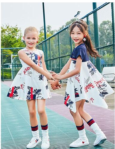 白色和蓝灰色搭配的连衣裙,植物和字母印花点缀传统或者时尚的连衣裙款式彰显小女生的活泼开朗,一对好朋友,跳一支欢快的舞曲,这款穿搭最相宜。