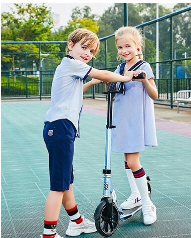 淡蓝色的学生制式服装高雅端正,同时舒适自然,符合儿童穿搭特点,不管是女生的连衣裙还是男生的套装,时尚靓丽。