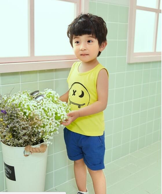 男童LOOK:夏天可以给男宝宝预备一件亮黄色的休闲背心,色彩亮眼有生机感,中心增加了兴趣感的卡通笑脸图画让造型更有童趣,穿起来休闲天然。下身调配一条宝蓝色的短裤,色彩饱和度高视觉冲击力强。再调配一双白色的休闲鞋,打造出了休闲生机的男童造型!
