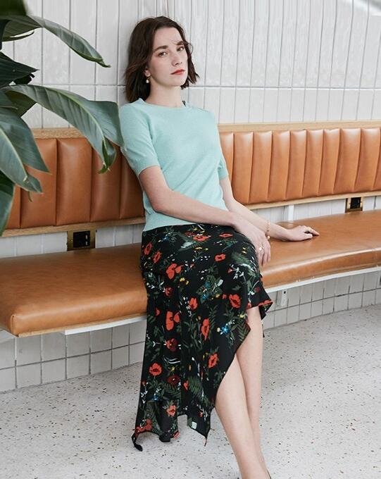 LOOK2:清新甜美风的造型很适合在夏日打造,女生可以选择一条印花半身裙来打造清新甜美风造型。艾诺丝雅诗的这款黑色印花雪纺半身裙,颜色经典耐看,印花元素清新自然,穿起来柔美清新。上身可以选择一件薄荷绿色的短袖,颜色清新自然,提升了造型的清新感。再选择一双抹茶绿色的单鞋,整体穿搭清新显气质!