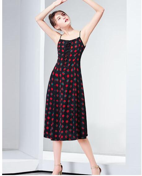 新款夏季波点吊带修身连衣裙一字肩礼服长裙,对于一个女性来说,怎么可能没有一条属于自己的晚礼服呢?这个晚礼服设计风格偏向于高贵,既修身也是呈现出优雅气质。