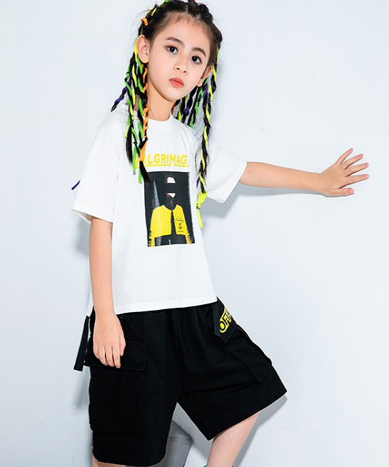 这款黑白配的搭配很是好看,简约大方的搭配很是受大家的喜爱,白色短袖设计简约大方,圆领的设计将孩子的脸型修饰的很好看,图案的设计很是时髦,版型都是稍微有点宽松,穿在身上一种慵懒范,下身搭配一件黑色短裤,轻松穿出不一样的感觉,搭配一双运动鞋,整体的造型很是帅气。