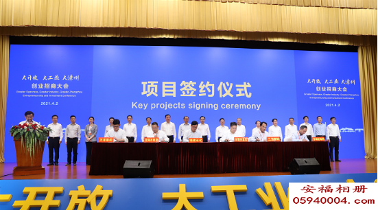 莆田安福网4月2日讯,4月2日,“大敞开、大工业、大漳州”创业招商大会在漳州宾馆举办。此次大会现场签约40个项目,总投资达659.3亿元。其间,央企国企项目6个、总投资224.4亿元,外企项目11个、总投资77亿元;民企项目23个、总投资357.9亿元。