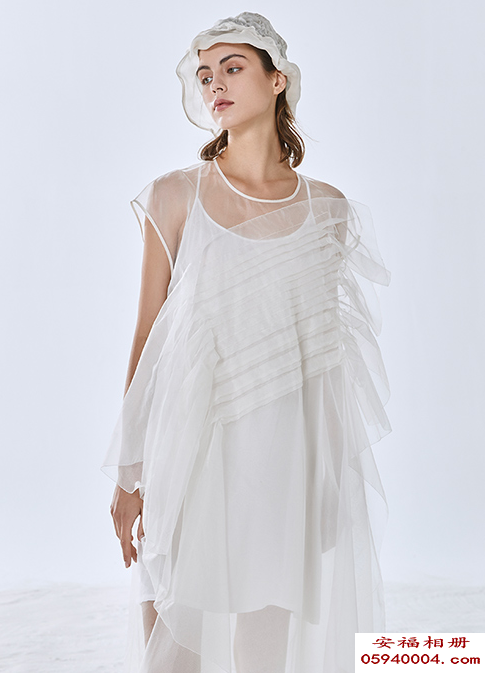 潇洒裙摆随风而动,书写天然的韵律。蜿蜒流动的灵动风格,打造无龄质感。部分采用手艺抽皱和叠褶肌理,增加了手艺定制感,丰富层次,高雅。花的形状,叶的纹理,以面料为画布、描摹天然肌理。