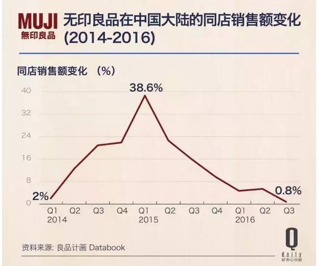 数据也表现了用户的选择,无印良品的同店出售增加缓慢,也即是说它的规划增加全赖开店来拉动。2016年6月,无印良品第五次降价,但并未带来增加,Q3同店出售增幅跌至0.8%。无印良品是我十分尊敬的品牌,我12年创建大朴,对它的学习与学习的地方十分多。它的成功有其时代必定性,它在品牌理念和视觉传达上的高度是别的品牌望其项背的,但走近看它的商品,会发现外观是简练一致的,但完成度并不高,从前有过很适可而止的构思,但现在简直看不到巧心的规划,与理念有者显着的距离。如果苹果不能继续发明令人惊叹的好商品,那么它的极致精力和极简规划也就无处承载,失去了份量。