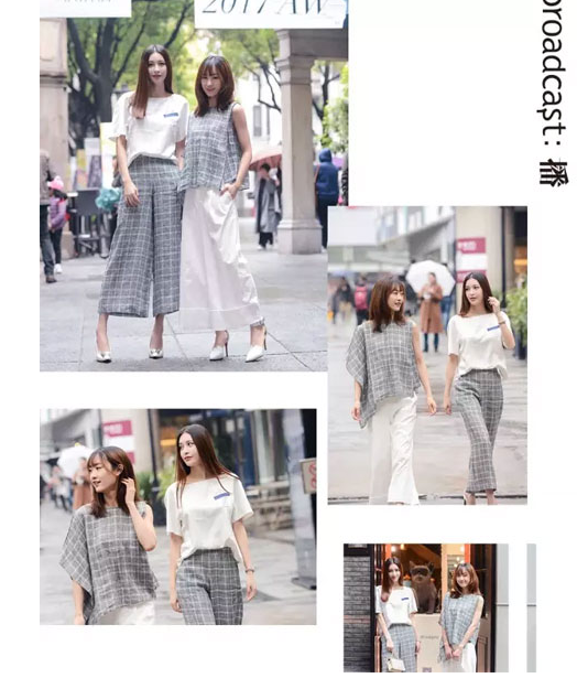 格纹棉麻上衣清透舒适,袖口打破惯例,采用不对称的设计,左侧无袖、左边的剪裁又让右臂若隐若现,加上下摆也是倾斜的剪裁,颇具神韵。下身搭配白色的棉质阔腿裤,才上一双浅色浅口高跟鞋,气质立显。