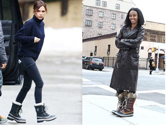 如果穿牛仔裤之类的休闲装扮,还可以像贝嫂一样选择一双运动休闲的雪地靴,瞬间就年轻运动起来了,或者来一双流行的绑带鞋,你看起来就像可以主导潮流,不过要当心,不要选择太夸张的款式。