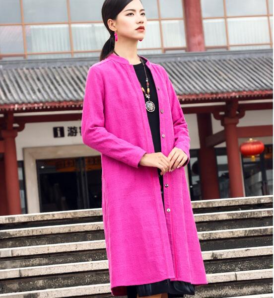 再来看这款桃红色的呢子大衣,如桃花在冷冬,百花凋谢,鹤立鸡群,盛情绽放,不畏严寒。精致的竖纽,细腻好看的面料,简单干练的衣领。搭配一件黑色的贴身长裙,简约大方,舒适耐看。