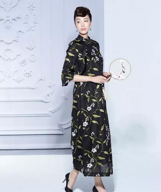 简洁流畅的线条,以帶有肌理紋路的黑色、白色為襯底,全身刺绣花朵惊艳点睛。素雅的白、粉紫色加上绿色的藤蔓,色彩逼真的还原,將杏花柔美呈现,立体精致勾勒出生动的線條,将那份舒淡文艺的气韵自然地流露出來,清新的帶出早春的氣息。