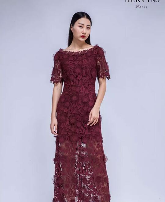 立体花朵刺绣丽丝面料,镂空设计,内配真丝抹胸,蕾丝与丝绒拼接典雅柔美。