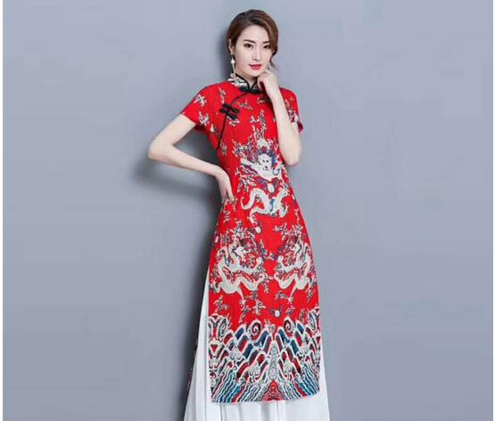 这一款是玛娃2018春夏复古民国风绣花拼接不对称边旗袍连衣裙,这不仅仅是一件衣服更是中西文化的结合的,更是古代与现代文化的融合,红色与白色的搭配,显得这款衣服的仙气十足,衣服上的刺绣呈现出我们中国的服装之美,裙摆的的飘逸展示了现代的美。古风与现代风,二者在我们平时看来是产生冲突,但在这一件衣服上完美的解释了二者不仅仅不冲突而且还可以 融合,从而体现出另一番风采。
