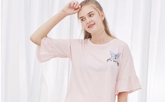 少女心的粉色,相信也是不少女生的首选颜色。桃花季品牌的这款粉色家居服,浅色系的粉色充满了温馨的色调,简约的微喇袖口、加上蝴蝶刺绣稍作点缀,每一处的细节都恰到好处。而舒适亲肤的面料又能让你体验到它的舒适悠闲。