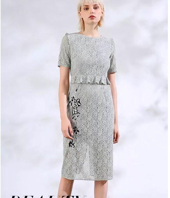 柔软舒适的网底细腻亲肤,分明的绣花清新淡雅,袖口拼接压褶暗花网料,浅浅的鸽灰色烘托出女性淡然恬静的知性美,结合下摆深灰色的绣花,复古又时尚