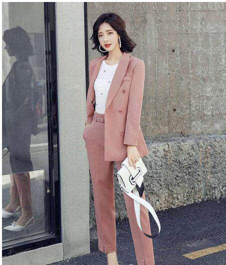 西服套装我们常见的有黑色、灰色和藏蓝色,粉红色的见得少。而这套的西服的粉红色是属于甜而不腻的类型,它不仅拥有西服的利落帅气,还带着点少女的甜美,可休闲可通勤,十分的时髦百搭。