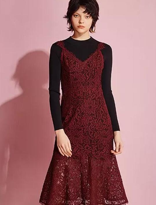 不知道穿什么的时候,一条红色连衣裙是不会出错的选择,手感舒适的优质蕾丝连衣裙,蕾丝加上花边的设计和鱼尾裙摆设计,散发着令人无法抗拒的迷人优雅魅力,面料轻薄通彻,具有优雅而又神秘的艺术效果,适合参加婚礼或宴会,沉稳而不失华丽。