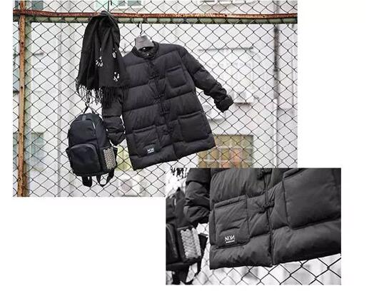 中式改良宽松羽绒服,白鸭绒轻盈保暖,后片加以水墨印花,独具一格,尽显中国风,下半身可搭不规则宽腿裤,前卫时尚中散发别样的复古气质。
