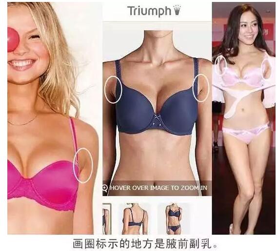 背部的(后天)副乳自己难以看到,但腋部的副乳却是清清楚楚出现在眼前,为了“掩盖”腋部“多出来的肉”,现在的文胸耳仔位设计大都很靠边。