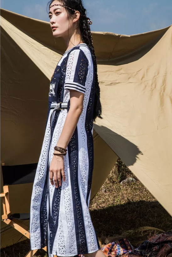 落肩袖宽松廓形连衣裙,100%棉针织面料 舒适透气,原创的动物图腾,让你的艺术气息更浓烈,而眼前席地就坐的当地艺术家,似乎在弹奏着你的即兴乐曲。