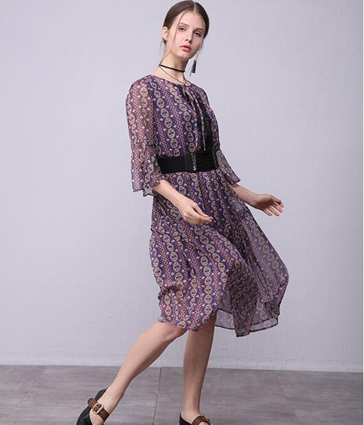 在夏日里,不能少的裙子,是那一款雪纺连衣裙,优雅带着复古,适合玲珑可爱的你,也适合高冷御姐范儿的你,不管平时你穿的是什么风格,依旧掩藏不住女孩们内心深处的柔美。ZIRONG子容女装这款碎花雪纺连衣裙,实用多变性是它最大的优点之一,不管黑色束腰带是否用上,依旧难挡迷人线条。