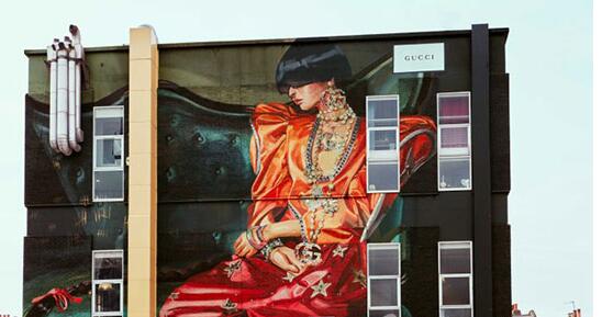 据悉,“古驰幻境”系列服饰上的画作,源于西班牙画家Ignasi Monreal创作的Gucci 2018春夏系列广告大片,近期英国东伦敦红砖巷(Brick Lane)的全新艺术墙也以他的创作为主题~~