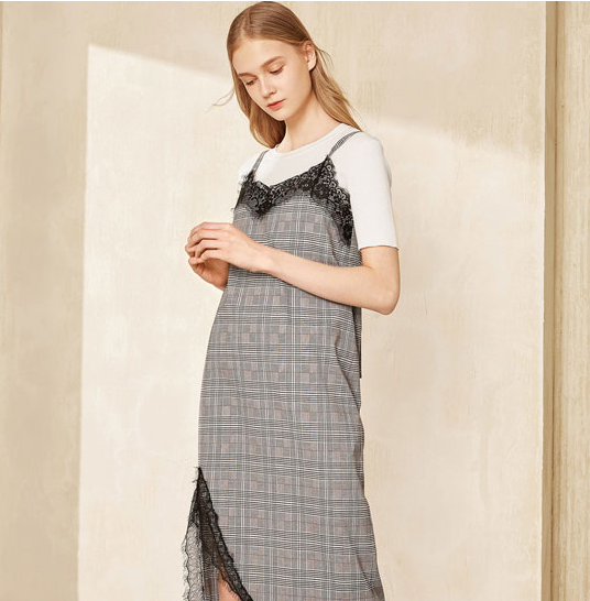 女生们喜欢裙装总是会多过喜欢裤装的,尤其是在夏日里时尚清凉的裙装更是女孩纸的必备单品。“布莎卡bushaka”女装的这款两件套连衣裙,简洁的白色内搭T恤,搭配上一条时尚修身的吊带外裙,适中的宽松版型,加入黑色的蕾丝修边,时髦又清新。