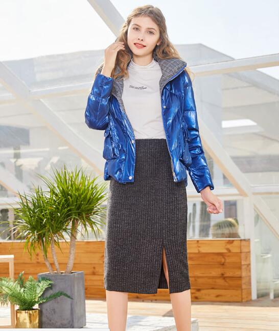 艾丽莎的短款羽绒服都是轻薄款,像这一件蓝色羽绒服也同样是轻盈的款式,搭配一条半身裙轻松展现青春的轻盈感~