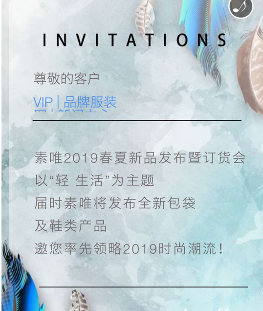时间走着走着就带走了2018;走着走着也带来了新一轮的时尚大秀!就在1月18日素唯19春夏新品发布会将在北京盛大举行!现邀诚邀各位加盟商/经销商的莅临,与品牌一同共赏这场盛宴!你约吗?