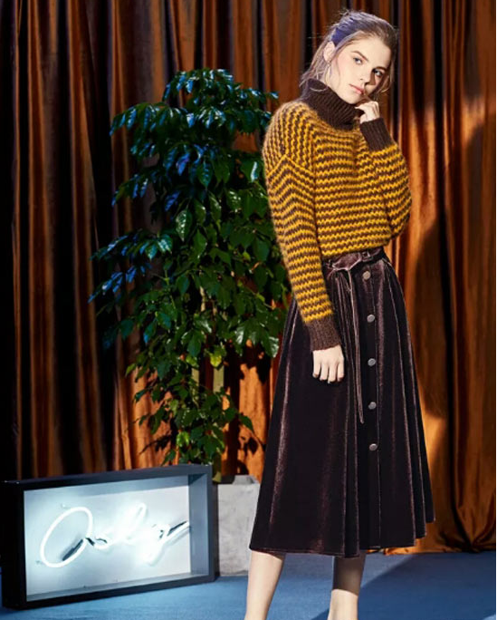 华丽的丝绒无论何时都是人群中耀眼的存在,它自带的优雅气质,能给予力更自信的表现。上身搭配的高领毛衣,少女感十足,整体穿搭甜美复古。如果天气比较冷的话,外面搭配一件浅色系的外套,就能美美哒的出门了。