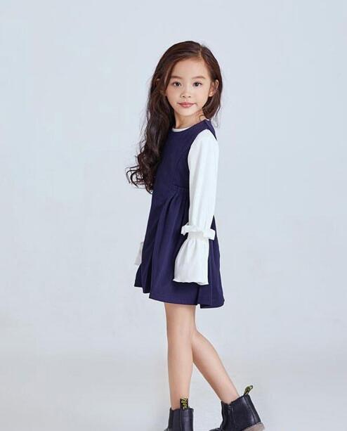 一件绉纱白色衬衣,精巧的袖口规划,就像戏服中的水袖,外搭一条深蓝色背心式连衣裙,衬出小女生好看的身材,挺拔的身姿就像春天里的衣服一幅写真画,时尚纯净唯美。