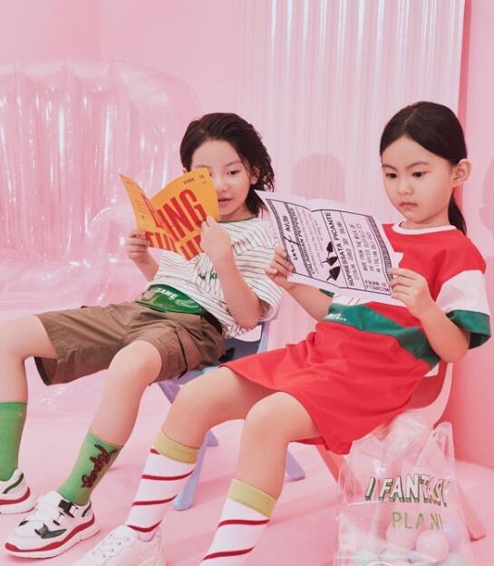 也能够挑选套装的样式,裙装的设计也很不错,一款赤色和绿色拼接的连衣裙样式,或许条纹T恤衫下身棕色的短裤配搭,女生能够英俊,男生也合适这么穿,裙装让小女子穿搭更精约,男生穿搭让整体更英俊。