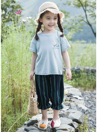 夏季孩子们又开始活蹦乱跳了,在绿油油的大草原上奔跑,是那么的童趣无比,毕竟这个时候天气正好,那么宝爸宝妈们又得要开始给他们准备方便活动的衣服,一件浅蓝色的上衣搭配一件条纹的七分裤,看起来十分甜美可爱,塑造出了一个时尚又清新的小萌娃。