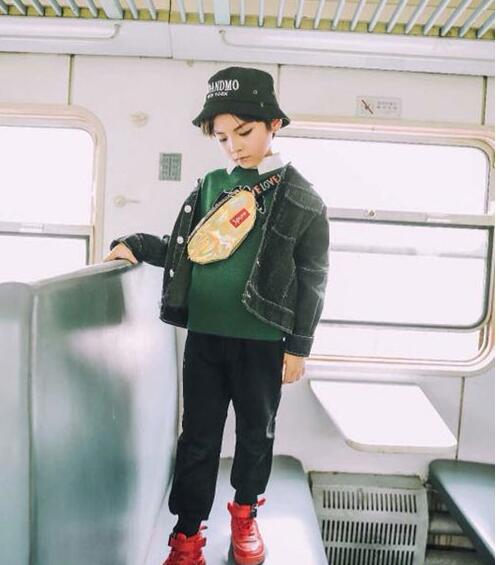 俗话说,春捂秋冻。尤其是对于尚还年幼的小朋友来说,不但服装要穿的好看时髦,还要再保暖上下功夫,这款厚实压风的灰色牛仔外套既时尚好看又防风保暖,内搭一件摩绿色羊毛衫和白色衬衣,搭配深色休闲运动裤,时尚的亮点是黑色的印花渔夫帽和红色休闲运动鞋,春天里最好的装扮。