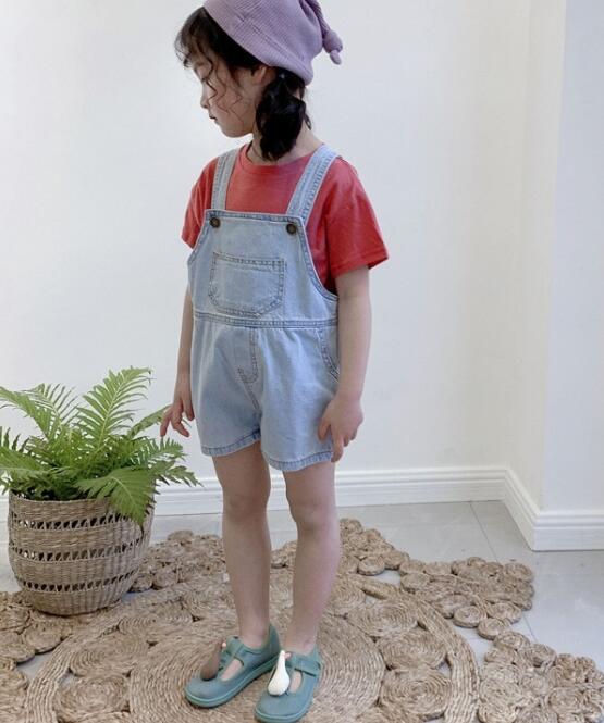 浅蓝色牛仔短裤也能够是背带裤的造型,背带裤样式简约又大方,内搭一件赤色T恤衫即可,女生的可爱一条背带裤就能够搞定,妹妹恩倪童装邀你一同来打扮看看,T恤衫的打扮一点也不会输给其它造型。