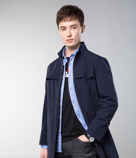 短款外套干脆利落,长款外套别有一番韵味,更加拉风,看袋鼠这一件拼接设计的长款外套,蓝色与黑色碰撞拼接,碰撞出不一样的火花,拼接设计透露出假两件的俏皮感。