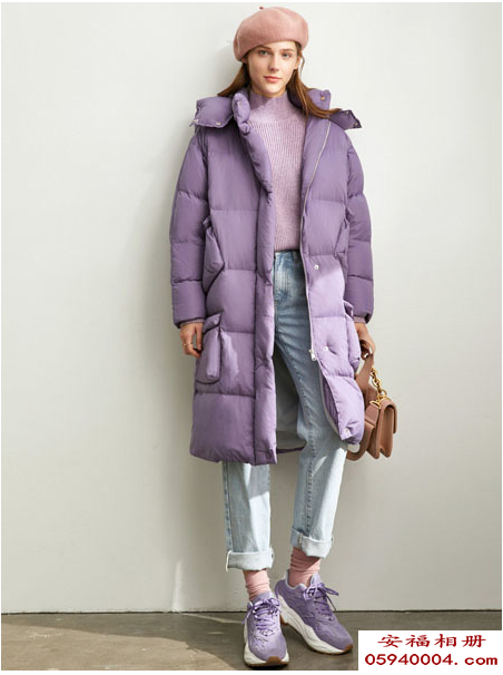 紫色调的羽绒服,长款的规划,分分钟让人感到高兴。四个口袋规划,能够很好地衬托出全体的丰厚感,那是一种需求这些口袋的满足感,青春靓丽的都市女孩,怎样没有这件羽绒服呢,不显臃肿超级显肤色。