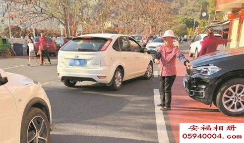 路旁边有人暗示能够泊车,但要收取10元泊车费。