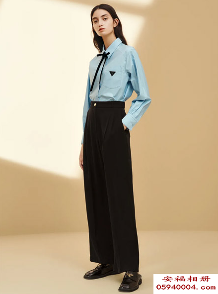 学院风简约衬衫,高织高密衬衫料裁成,手感细腻,上身挺括有型,搭配蝴蝶结设计,减少衬衫正式感更添几分甜美,下搭直筒休闲裤,面料顺滑不起静电,显瘦效果非常好,整体穿着甜酷学姐风,出街回头率爆棚。