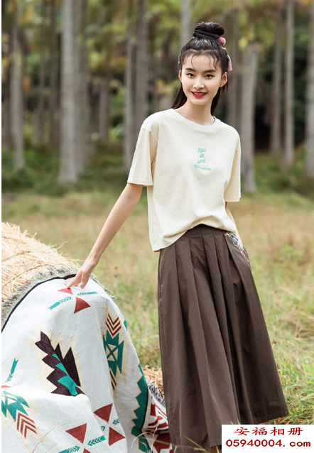 偶尔放缓脚步,尝试放松下紧绷几天的身心。拒绝过多装修,不限于繁琐条框。故事感胶片印花T恤,宽松纯棉裤裙,简单的组合减少拘束感,享用洒脱安闲。