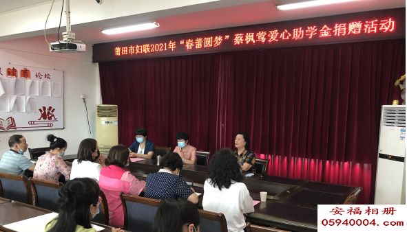 安福相册讯,今天下午,莆田市妇联2021年“春蕾圆梦”蔡枫莺爱心助学金捐献活动举行。莆田市妇联主席庄怀冰向爱心女企业家蔡枫莺颁发捐献证书,市妇联副主席郑丽萍以及爱心女企业家代表一同参加活动。